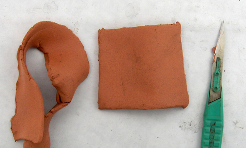 4. Cut the top layer to the shape of the backing layer, letting the dry clay lead your knife.