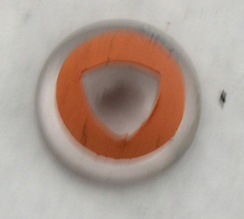 6. Place the dry steel dome on the copper one. Make sure that all of the cut-out area in the copper shows through the cut-out area in the steel dome. If it doesn’t, repeat step 4 with a smaller trillion shape.