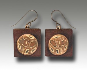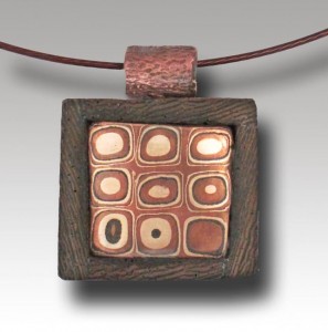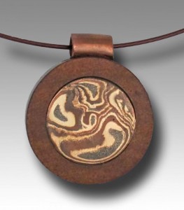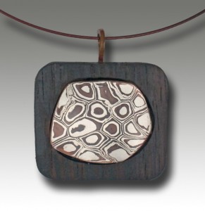 And this one is still experimental: it is a solid piece of mokume gane made with Friendly Copper and White Bronze, with no backing layer or core.