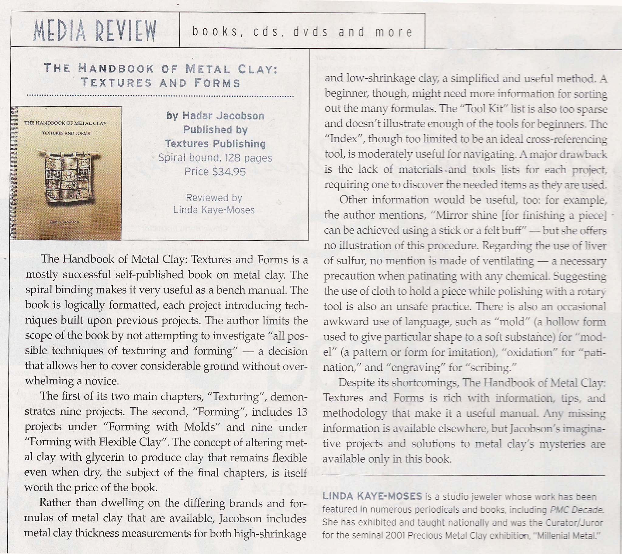 Despite its shortcomings, The Handbook of Metal Clay: Textures and