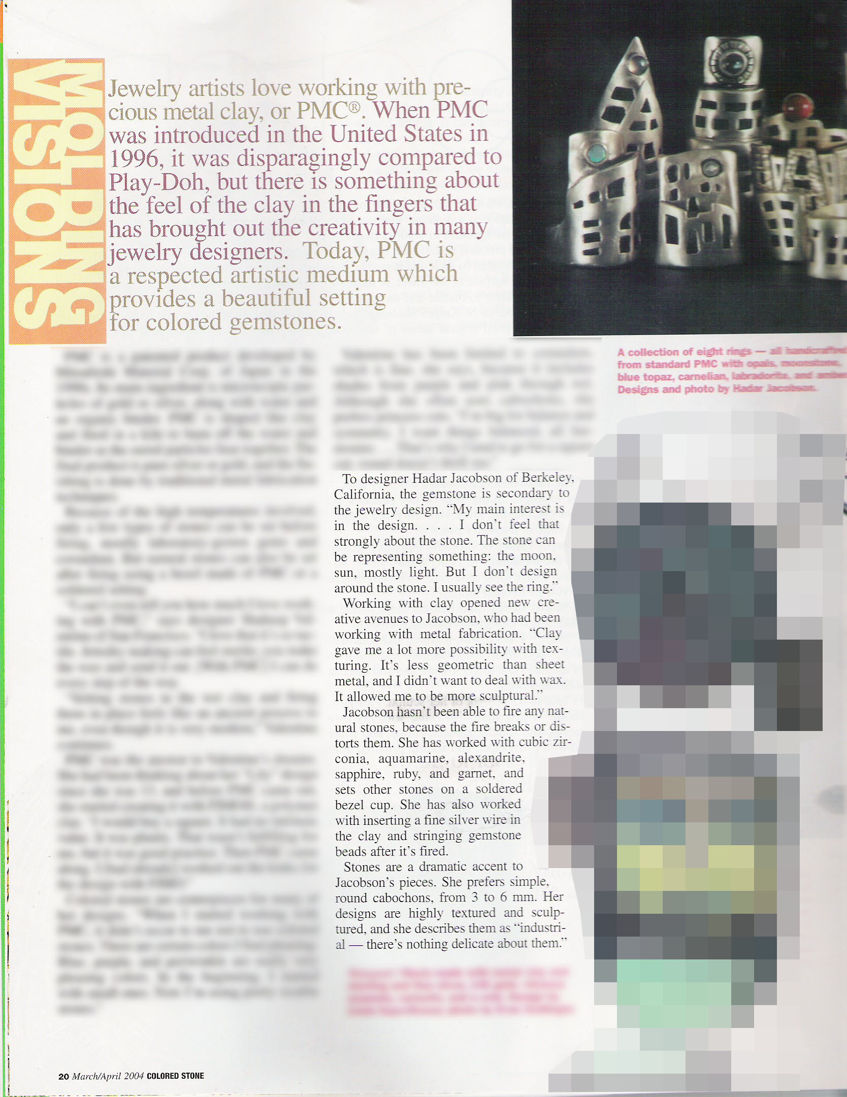 Hand Crafted Silver Jewelry by Hadar Jacobson 918 Ventura Ave., Berkeley, CA 94707-2123, (510) 528-4193 hadar@pacbell.net - www.artinsilver.com |